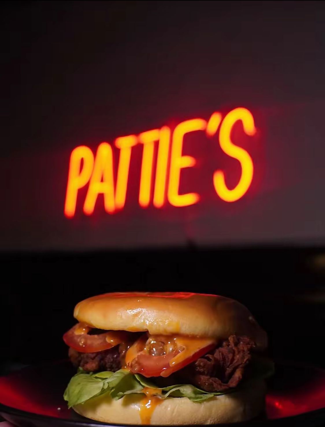 Carne angus, Queso Cheddar, Tocino, Aderezo Pattie´s, Tomate y Lechuga.